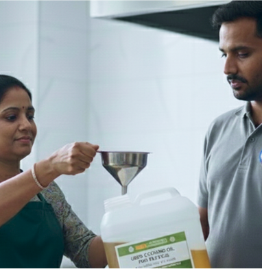 Licensed recyclers convert used oil into biofuel, supporting environmental sustainability and a circular economy